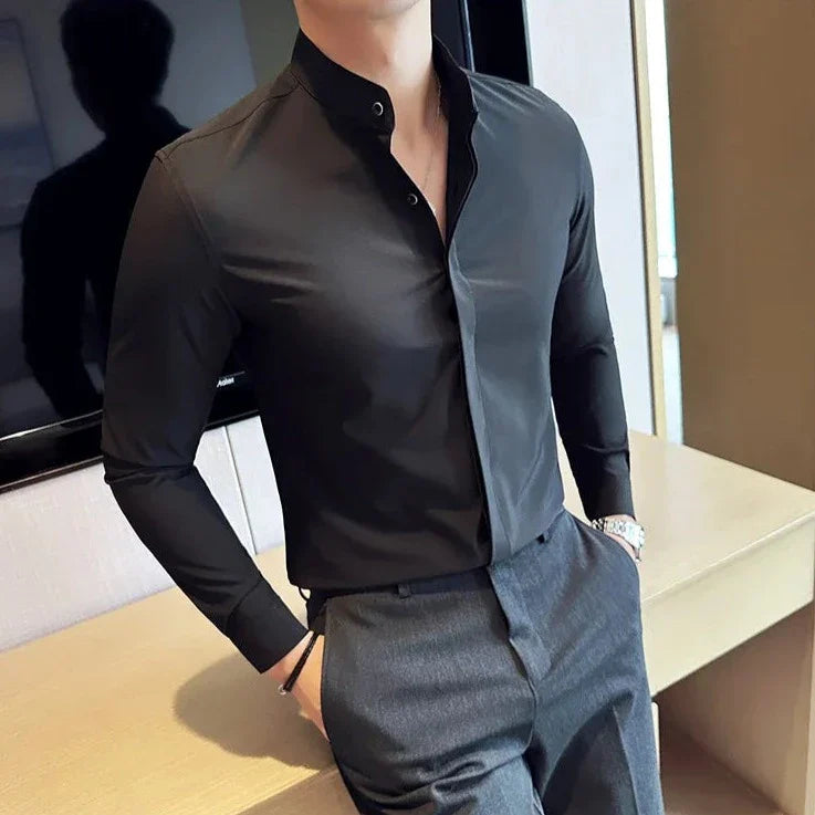 Dit overhemd straalt pure verfijning uit – een tijdloos stuk voor de man die elegantie waardeert. De pasvorm is comfortabel maar strak genoeg om een verzorgde uitstraling te behouden. Met zijn subtiele glans en klassieke lijnen ademt dit overhemd de sfeer van Old Money, verrijkt met een vleugje Italiaanse allure. Perfect voor kantoor, zakelijke meetings of formele gelegenheden.